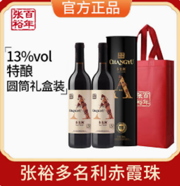 张裕特酿特选级赤霞珠多名利干红葡萄酒国产红酒双支圆